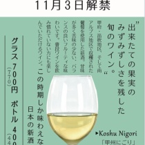 こんにちわ、みかです! 本日は文化の日につき、15時からオープンしております。 是非早い時間からお待ちしております〜 そして本日から甲州ヌーボーが解禁になります。 毎年大人気ですぐ売り切れてしまうのでお早めにどうぞー!! それでは本日も24 ...