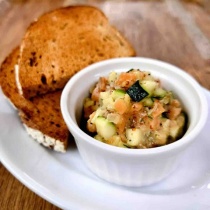 【NEW DELI】『スモークサーモンのタルタル』と『鶏もも肉とオリーブのトマト煮込み』